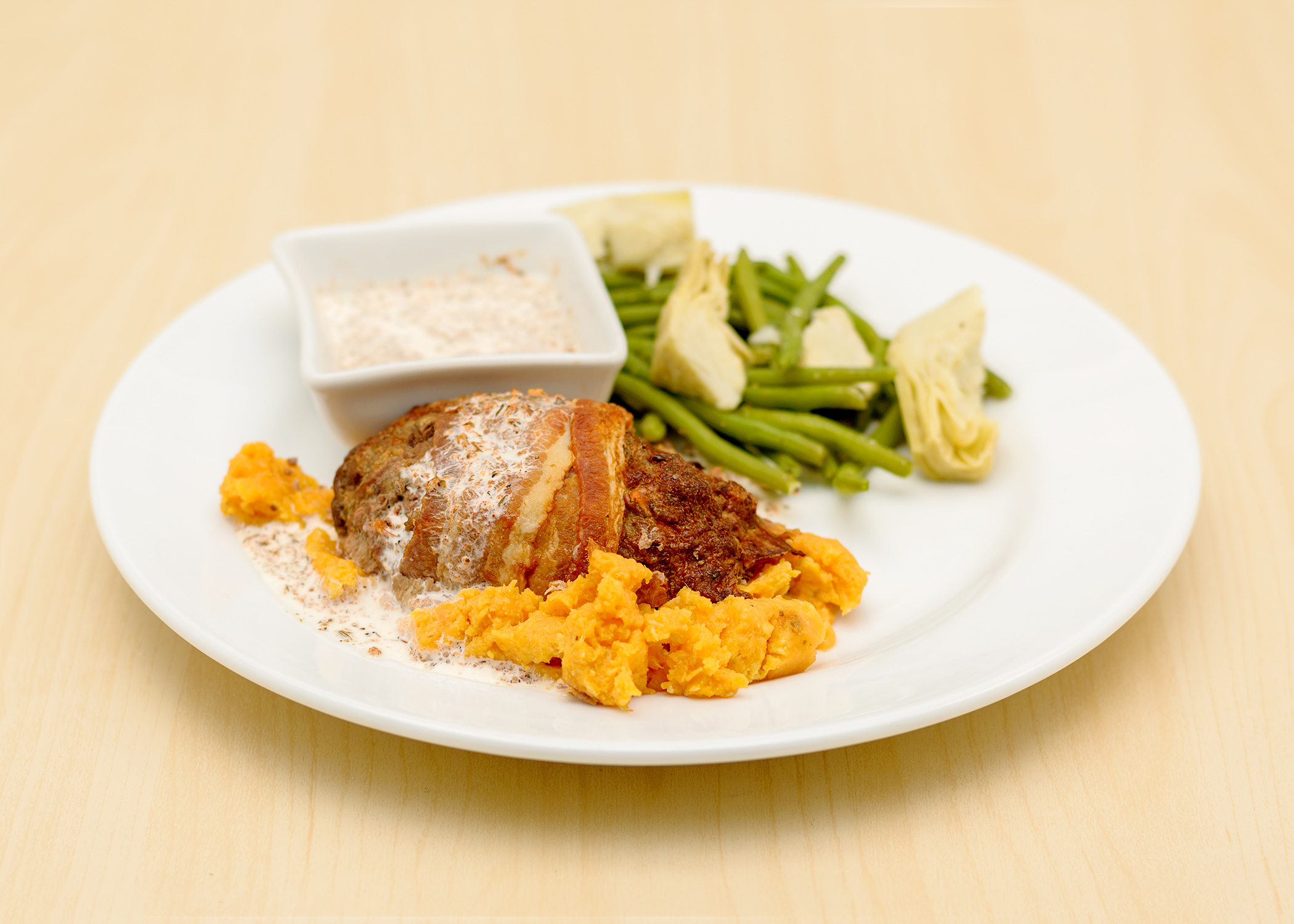 Cedar Plank Wild Caught Salmon with a Chipotle Pumpkin Seed Salsa. Served with Mashed Sweet Potatoes and a Side of Collard Greens. Ingredients: Salmon, Parsley, Smoked Paprika, Pumpkin Seeds, Garlic, Red Peppers, Jalapeno Pepper, Cilantro, Red Wine Vinegar, Chipotle, Olive Oil, Sweet Potatoes, Coconut Milk, Cinnamon, Collard Greens, Veggie Stock, Onions, Salt and Pepper